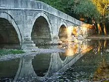 The Roman Bridge is located not far from Vrelo Bosne on the Bosna river in the Ilidža municipality, which was built sometime between 1530 and 1550 from the original Roman stones and ruins of the bridge that stood there during the Roman period used to connect the Romans with the village of Aquae Sulphurae at the time. Ilidža is also known to have been an archaeological site dating 2400–2000BC.[1]