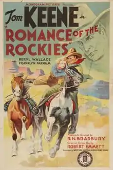 Romance of the Rockies is a 1937 American Western film directed by Robert North Bradbury and written by Robert Emmett Tansey. The film stars Tom Keene, Beryl Wallace, Franklyn Farnum, Don Orlando, Bill Cody Jr. and Earl Dwire. The film was released on December 15, 1937, by Monogram Pictures.[1][2][3]