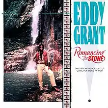 "Romancing the Stone" is a song written, recorded and produced by Eddy Grant, who released it from his 1984 album Going for Broke. It was intended for the 1984 feature film of the same name, in fact was announced by Casey Kasem on the 30 June 1984 edition of American Top 40 as the title song to the movie, but ultimately was used only briefly in the film.[4][5] Clips from the film appeared in at least one official music video for the song, and the song is mentioned in the film's closing credits.