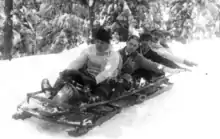 The practice of bobsleigh in Romania dates back to around 1909,[2] when sporting activity was limited to a few days a year, around the winter holidays; from 1910 "winter sports competitions" were organised, with modest participation. Until 1916, bobsleigh races were regularly held in Sinaia, along with sledging and skeleton races, but without precise rules. The first winner of a bobsleigh race in 1910 was N. Filiti, and the first winner of a multi-team race was a generic "Romanian Sports Club" (Cercul Sportiv Român). In 1911, the presence of women in bobsleighing was very active: competitions were organised in three events (two-woman bobsleigh, two-man bobsleigh and team competition of 2-5-6 persons), whose winners included Natalia Darvari (women), Jean Costinescu (men) and the mixed crew of the "Societatea Săniutza". In 1912, the competition programme was the same: in the women's category Mihaela Ghyka won, and in the men's category a (male) crew led by Mihaela Ghyka herself won.[3].