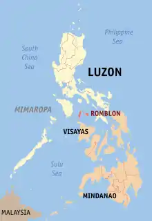Romblon's at-large congressional district refers to the lone congressional district of the Philippines in the province of Romblon. It has been represented in the House of Representatives of the Philippines since 1919 and earlier in the Malolos Congress (National Assembly) of the First Philippine Republic from 1898 to 1901.[3][4] Romblon has been represented by a single representative elected provincewide at-large since its reestablishment as a regular province separate from Capiz in 1917.[5] From 1943 to 1944, the district was again dissolved and reconsolidated with Capiz for the National Assembly of the Second Philippine Republic. Between 1978 and 1984, regional delegations were formed in lieu of provinces for the national parliament of the Fourth Philippine Republic, with Romblon forming part of the twenty-seat Region IV-A's at-large district.[6] It was restored as a single-member district in 1984.[3]