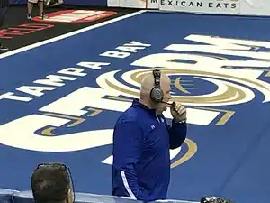 On October 25, 2016, he was named the head coach of the Tampa Bay Storm.[5] He helped the Storm to a 10–4 regular season record and a berth in ArenaBowl XXX, where they lost to the Philadelphia Soul by a score of 44–40.[6][7] The Storm, who finished with a 2–14 record in 2016, became the first team in AFL history to have a winning percentage of less than .200 in a season and then earn an ArenaBowl berth the next season. James was named the AFL Coach of the Year in 2017.[6] The Storm folded in December 2017.
