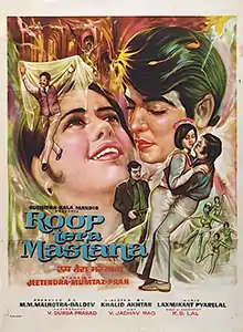Roop Tera Mastana (transl. Your beauty is intoxicating) is a 1972 Hindi-language thriller film, produced by Baldev Pushkarna and M.M. Malhotra under the Suchitra Kala Mandir banner and directed by Khalid Akhtar. It stars Jeetendra, Mumtaz, Pran in lead roles and music composed by Laxmikant Pyarelal. The film features very popular and melodious song 'Bare Bewafa Hain Yeh Husn Wale', sung by Mohammad Rafi.