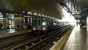 Roosevelt station is a rapid transit station in San Juan, Puerto Rico, located in the Hato Rey Norte barrio and the Milla de Oro financial district. The station is named after the Franklin D. Roosevelt Avenue where it is located. The station opened on December 17, 2004. It features a tile mural by the artist Susana Espinosa entitled Encuentros Fugaces.[1]
