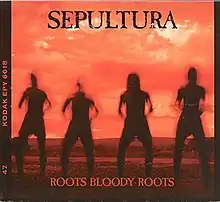 "Roots Bloody Roots" is a song by Brazilian heavy metal band Sepultura, released in February 1996 as the lead single from the band's sixth album Roots. The song is the band's best known and remains a concert staple to this day, usually being performed on encores. A music video was filmed for the single which features the band performing in a catacomb as well as on the streets with a tribe of percussionists.[4] This video can be found on the VHS We Are What We Are,[5] which was later released on DVD as part of Chaos DVD.[6]
