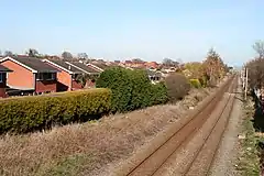 ![]() Crewe to Nantwich railway from Ropegreen Bridge; Wells Green is on the left | |