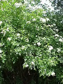 Rosa beggeriana is a species of rose found in Anatolia, Iran, Afghanistan, Pakistan, all of Central Asia, Xinjiang and Gansu in China, and Mongolia.[2] It is a winter‑hardy rambler, with typically flat white (rarely light pink) flowers, and small red (becoming black‑purple) hips.[3][4] Its 'Polstjärnan' (polestar) cultivar (of uncertain parentage) is the cold‑hardiest known climbing rose.[5]