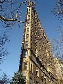 After graduation, Candela worked briefly as a draftsman for the Palermo-born Italian-American architect, Gaetan Ajello.[5] After another brief stint with the firm of Frederick Sterner, Candela set up his own practice in 1920. His first major commission was for an apartment house at West 92nd Street and Broadway. Shortly thereafter, he received his first commission for an East Side apartment at 1105 Park Avenue.[7] During the next five years, Candela designed a number of residential buildings on the Upper West Side, primarily on West End Avenue and Riverside Drive.[7] During this period, the West side was undergoing an intense transformation from an area of primarily single-family homes to one characterized by the apartment buildings.