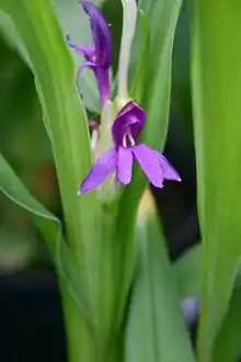Roscoea tibetica is a perennial herbaceous plant native to the mountains of China, being found in Tibet, Sichuan and Yunnan.[2] The species formerly included plants found in Bhutan; in 2000, these were separated into a new species, Roscoea bhutanica.[3] Most members of the ginger family (Zingiberaceae), to which it belongs, are tropical, but R. tibetica, like other species of Roscoea, grows in much colder mountainous regions.[2] R. tibetica is sometimes grown as an ornamental plant in gardens.[4] In 2020, it was proposed that R. tibetica be split again.