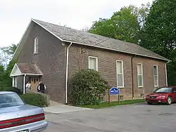 The first settler in the Rose Point vicinity were Abraham Wigle and Samuel Stickle of Westmoreland County, who arrived in 1804. Wigle was the first of many to harness the power of the Slippery Rock Creek, building a gristmill and a sawmill on its banks in about 1825; although Wigle's mill was destroyed by water, another mill (later abandoned) was built shortly before 1850,[6] and the still-preserved McConnells Mill is just 2 miles (3 km) downstream.[2] Various businesses were established in the community, including a hotel, blacksmiths' and cobblers' shops, and multiple stores. Two churches were established in the community: one Reformed Presbyterian (which still exists), and one Roman Catholic. Slippery Rock Township's natural resources were exploited in Rose Point, with iron furnaces being built to use locally-produced iron ore, coal, and limestone.[6] Of these two, the Willie Roy or Wilroy Furnace, built in 1854, has been recognized as a Pennsylvania state historic location.[6][7] Public services were also introduced to the community: a post office was opened in the 1850s, and a village school was established in the early 1860s. Dates given for the establishment of the Rose Point post office vary from 1852 to 1858; regardless of the date of its establishment, the post office operated until disestablishment in 1933.[8] Today, Rose Point addresses are served by the New Castle ZIP code, 16101.[9] While the community has long been known only as Rose Point, it also bore the name of "Stonetown" for a time in its early history; the post office, however, was always named Rose Point.[6]