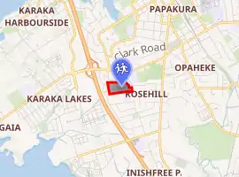 Located approximately 30 minutes south of Auckland CBD, on the southern edge of the Auckland metropolitan area, the college admits students residing on the western side of the Southern Auckland Railway Line in Papakura and caters the Rosehill, Pahurehure, and Opaheke area as well as students from surrounding rural areas including Te Hihi, Karaka, Drury, Ponga, Runciman, Ramarama, Ararimu, Kingseat, Waiau Pa, and Clark's Beach. The campus is also situated next to Rosehill Intermediate.