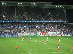 The club plays its home matches at Lerkendal Stadion, an all-seater stadium in Trondheim. Since the last rebuilding in 2002, it can host 21,166 spectators.[5] Rosenborg's record attendance in a European match of 22,492 dates from the 1968–69 European Cup match against Rapid Wien.[6] Rosenborg's biggest win is 7–1 against Astana in the 2007–08 UEFA Champions League qualification, while the biggest defeat is 1–9 against Hibernian in the 1974–75 UEFA Cup. With 133 caps, Roar Strand has appeared in the most UEFA matches for Rosenborg, while Harald Brattbakk has scored the most goals with 27.[1] Rosenborg has played Juventus, Porto and Real Madrid six times, more than any other team.[3]