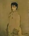 She was frequently portrayed by artists. Edgar Degas painted her several times onstage: Fin d'arabesque (1877, see above); Danseuse sur la scène (1878, see gallery); Ballet vu d'une loge de l'Òpera (1885).[9] Others included Édouard Manet (Portrait of Rosita Mauri 1877/9, also known as Jeune femme en rose (see gallery)), Auguste Renoir, Léon Bonnat, Léon Comerre, Anders Zorn (a portrait in 1888 and an etching in 1889),[10] and Ludovic-Napoléon Lepic. She was also sculpted by Denys Puech, Laurent Marqueste, and Eusebi Arnau. The photographer Nadar made portraits of her throughout her career.[11]