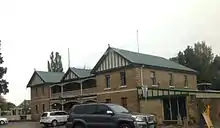 The Town Hall is a neo-classical style late-Victorian building. The adjoining Council Chambers is a timber building with a stone façade. The Post Office was completed in 1889[15] and has a verandah with twin cast-iron columns. The schoolhouse is a Victorian Rustic Gothic building with random rubble sandstone walls.[16]