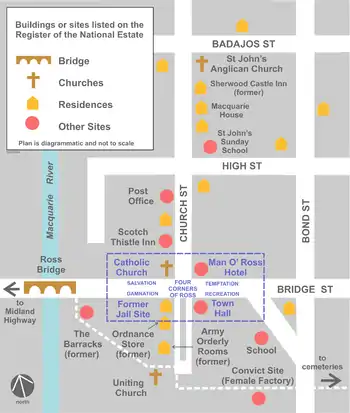 - "Ross Historic Town, Church St, Ross, TAS, Australia (Place ID 13218)". Australian Heritage Database. Australian Government.