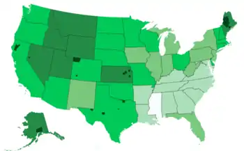 On Election Day, Perot finished in third place behind Clinton (the winner) and Bush. Perot received 19,743,821 votes, the most ever received by a third party candidate, which accounted for 18.91% of the popular vote. He failed to win any states in the Electoral College because of the relatively even distribution of his support, but did win over 30% of the vote in Maine and 27% in Utah, finishing second in both states.[104] Perot was the first third party candidate since George Wallace in 1968 to finish first in a county. Notably, Perot managed to win counties in states won by Clinton (specifically California, Nevada, Colorado and Maine) as well as in states carried by Bush (these being Alaska (divided into boroughs), Kansas and Texas). He won his largest percentage in Matanuska-Susitna Borough, Alaska and Loving County, Texas with over 40%. He finished second ahead of either Bush or Clinton in a further 345 counties.[105] According to exit polls, 52% of Perot's supporters were male, 94% were white, 63% were aged between 18 and 44, and about 2/3 had not received a college degree. The income of supporters mirrored the general public. In terms of ideology, 53% identified as moderates, 27% were conservative and 20% were liberal, while two-thirds were either members of the Democratic Party or were politically independent.[30]