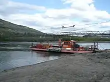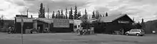 World War II and the years immediately following brought massive changes to Ross River. The building of the Canol Road and pipeline between 1942 and 1944 brought a massive, but temporary, influx of newcomers and the new road made the community more accessible, although the road closed in 1946 and did not reopen until 1958.[4] The late 1940s and early 1950s also saw a collapse of fur prices and the permanent closure of most of the region's fur trading posts — including Pelly Banks, Sheldon Lake, Rose Point, Frances Lake and Macmillan River. By 1952 Ross River had the only remaining trading post in the region. The Canol Road shifted the commercial centre of the community to the south bank of the Pelly River at the new ferry crossing point and the federal government began pressuring the First Nation to move across the river from the Old Village. By the mid 1960s the community of Ross River assumed the shape it has today.