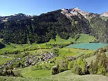 Of the built up area, housing and buildings made up 0.8% and transportation infrastructure made up 1.7%. Out of the forested land, 43.2% of the total land area is heavily forested and 3.9% is covered with orchards or small clusters of trees. Of the agricultural land, 0.2% is used for growing crops and 10.5% is pastures and 27.5% is used for alpine pastures. Of the water in the municipality, 1.1% is in lakes and 0.6% is in rivers and streams. Of the unproductive areas, 6.0% is unproductive vegetation and 1.8% is too rocky for vegetation.[4]