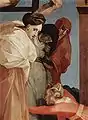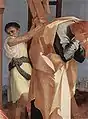 His masterpiece is generally considered to be the Deposition or Descent from the Cross altarpiece in the Pinacoteca Comunale di Volterra (initially painted for the Duomo). In contrast to the frozen grief of other depositions, this one appears as a hurried and complicated operation, while the figures below have simple and forceful expressions of quiet grief, with powerful expressions hinted at by hidden faces. The sky is somber. The three ladders and those carrying down Christ appear precarious. Christ himself is sallow. Contrast this frenetic, windswept scene with the equally complex, but more restrained composition on the same theme by the near contemporary Florentine Mannerist Pontormo.