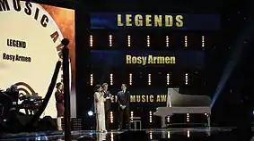 In December 2014, during a new ceremony, Rosy Armen received further recognition with "International Music Award" at the Moscow Kremlin, for singing in the countries of the world in different languages including Armenian.