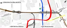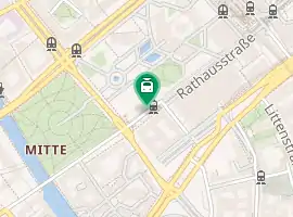Rotes Rathaus is a subway station in Berlin's Mitte district. It is part of the extension of the U5 from Alexanderplatz to Brandenburger Tor, construction of which began with a turf-cutting ceremony in 2010.[1] The station and the line opened simultaneously on 4 December 2020.[2][3]