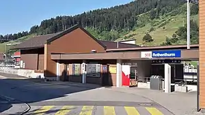 Rothenthurm railway station (German: Bahnhof Rothenthurm) is a railway station in Rothenthurm, in the Swiss canton of Schwyz. It is an intermediate stop on the standard gauge Pfäffikon–Arth-Goldau line of Südostbahn.