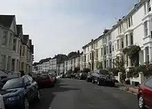 Round Hill (sometimes spelt Roundhill)[1] is an inner suburban area of Brighton,[2] part of the coastal city of Brighton and Hove in England. The area contains a mix of privately owned and privately rented terraced housing, much of which has been converted for multiple occupancies, and small-scale commercial development. It was developed mostly in the late 19th century on an area of high land overlooking central Brighton and with good views in all directions, the area became a desirable middle-class suburb—particularly the large terraced houses of Roundhill Crescent and Richmond Road, and the exclusive Park Crescent—and within a few decades the whole of the hill had been built up with smaller terraces and some large villas.