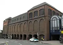 Standing next to each other at Preston Circus, at the northwest edge of the suburb, are the Duke of York's Picture House and Brighton's main fire station. The cinema opened on 22 September 1910, making it one of the first in the world, and it is still operational as England's oldest working cinema.[92] The Clayton & Black firm's ornate Baroque-style building, with a three-bay façade defined by paired pilasters with rustication, cost £3,000.[91][92] The fire station, designed in a "restrained Modernist" style by Graeme Highet in 1938, curves round the road and features carved motifs by Joseph Cribb.[93] Its materials are brown brick and Portland stone.[94]
