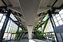 The station is located just to the south of the Windsor Road rail bridge. This structure, a cable-stayed suspension bridge designed by Italian civil firm Salini Impregilo, is a visual icon for the district.[13] Both opened 26 May 2019.