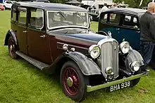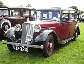 During 1934 an extra new body shape was offered designated Streamline saloon and, more compact, a Streamline coupé. Both were a fastback shape, the rear portion not unlike the Riley Kestrel body. The four-door Streamline coupé's roof left even less headroom for the rear passengers than the restricted space available to backseat passengers in the Streamline saloon.[8]