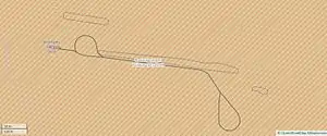 By the dumbbell shaped design with turning loops at either end, it was possible to run the unmanned trolley, onto which a wooden target in the shape of a military tank was fixed, continuously back and forth along track.[1][2][4][5]