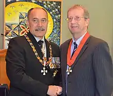 Crawford (right) in 2015, after his investiture as a Companion of the New Zealand Order of Merit by the governor-general, Sir Jerry Mateparae
