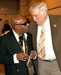 In 1994, Haynes was awarded the Danish Jazzpar prize, and in 1996 the French government knighted him with the Chevalier de l'Ordre des Arts et des Lettres, France's top literary and artistic honor.[5] Haynes received honorary doctorates from the Berklee College of Music (1991),[25] and the New England Conservatory (2004),[26] as well as a Peabody Medal, the highest honor bestowed by the Peabody Institute of The Johns Hopkins University, in 2012.[27] He was inducted into the DownBeat magazine Hall of Fame in 2004.[28] On October 9, 2010, he was awarded the Mid Atlantic Arts Foundation's BNY Mellon Jazz Living Legacy Award at the Kennedy Center for the Performing Arts in Washington, DC.[29]