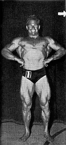 Roy Stanley Hilligenn (November 15, 1922 – August 3, 2008) was an American bodybuilder who was awarded the title of Mr. South Africa for four years, as well as AAU Mr. America in 1951. Famous for his strength, vegetarianism, and smile, Hilligenn mixed bodybuilding and weight training in his fitness programs.[1] He appeared on famous magazine covers such as Strength & Health and Iron Man during his bodybuilding career. Standing at only 5'6"(167.64cm), Hilligenn was the shortest person to ever win the Mr. America title.[2]