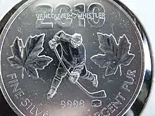 | 2010 | 2010 Vancouver Olympics: The Sun[16] | 92.5% silver, 7.5% copper | 30 grams | Frosted relief on a proof-like field | Xwa lack tun (Rick Harry) | 5,000 | 139.95 |
