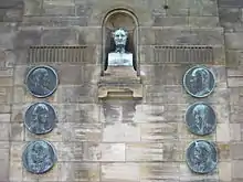 The Pinel Memorial was erected in 1926 to commemorate the centenary of the death of Philippe Pinel, a pioneer of psychiatric care. It includes six bronze medallion heads to other principal figures in improving conditions: William Tuke, Florence Nightingale, Robert Gardiner Hill, Andrew Duncan, Dorothea Lynde Dix and Campbell Clark.[17]