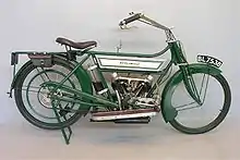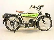 In 1914 Enfield supplied large numbers of motorcycles to the British War Department and also won a motorcycle contract for the Imperial Russian Government. Enfield used its own 225 cc two-stroke single and 425 cc V-twin engines.[23] They also produced an 8 hp motorcycle sidecar model fitted with a Vickers machine gun.