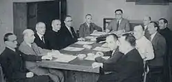 ![]() Photo from a session of 1942. From left to right: Vangjel Koca, Aleksander Xhuvani, Anton Paluca, Anton Harapi, Xhevat Korça, Mustafa Kruja, Ernest Koliqi, Dhimiter Beratti, Giuseppe Valentini, Karl Gurakuqi, Eqrem Vlora, Nicola Lo Russo Attoma, Dom Lazër Shantoja. | |