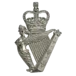The uniform combines elements of the uniform of the Royal Irish Rangers with the harp-and-crown cap badge of the Ulster Defence Regiment.[27]