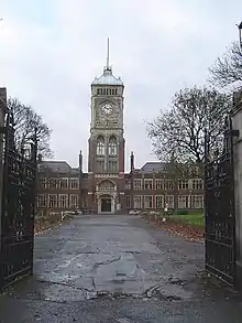 The origins of the school lie in the charities established in the late 18th century to clothe and educate the sons of Freemasons near their homes. These charities amalgamated in 1852 and established a boys' school at Wood Green in North London in 1857.[1] The foundation stone for a new school in Bushey was laid by the Duke of Connaught and Strathearn.[2] It was designed by Gordon & Gunton[3][4] and completed in 1903.[5] A Junior School was added on the other side of The Avenue in 1929 and by 1939 there were 800 boys at the school.[1][6]