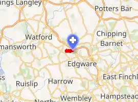 The Royal National Orthopaedic Hospital (RNOH) is a specialist orthopaedic hospital located in the London Borough of Harrow, United Kingdom, and a part of Royal National Orthopaedic Hospital NHS Trust. It provides the most comprehensive range of neuro-musculoskeletal health care in the UK, including acute spinal injury, complex bone tumour treatment, orthopaedic medicine and specialist rehabilitation for chronic back pain.[1] The RNOH is a major teaching centre and around 20% of orthopaedic surgeons in the UK receive training there.[1]