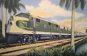 The Royal Palm provided connections with the New York Central Railroad at Cincinnati for passengers headed to Detroit, Cleveland and St. Louis. The Pennsylvania Railroad from Cincinnati provided a connection to Chicago. A through sleeper and coach between Miami and Detroit operated until 1957. The Florida East Coast Railway operated the Jacksonville to Miami section of the route, on the FEC's #5 train south and #6 train north.[1] From Jacksonville to St. Petersburg the Seaboard Air Line operated that alternate section of the train on the SAL's Silver Meteor.[2]