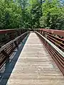 The more easterly of the two pedestrian bridges in the Royal River Park is built on old abutments for a trolley line which ran between Yarmouth and Freeport between 1906 and 1933. The Beth Condon Memorial Pathway crosses the bridge.[2]