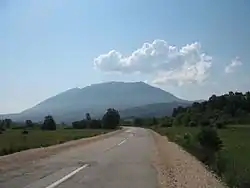 Rtanj (Serbian: Ртањ, Romanian: Artan, pronounced [r̩̂ːtaɲ]) is a mountain situated in eastern Serbia, approximately 200 km southeast of Belgrade, between the towns of Boljevac on north and Sokobanja on the south. It belongs to the Serbian Carpathians. Its highest peak is Šiljak (pronounced [ʃǐːʎak]) (1,565 m), a natural phenomenon of karst terrain.
