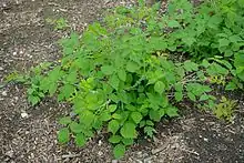 Rubus biflorus is a flowering plant in the genus Rubus (including raspberries and blackberries), in the family Rosaceae. It is a deciduous, suckering shrub, native to East Asia, growing 3m to 3.5m, which is grown ornamentally for its arching white thorny stems in Winter. The underside of the pinnate leaves also has a white bloom. The flowers are white, sometimes followed by edible yellow fruits. This plant has gained the Royal Horticultural Society's Award of Garden Merit.[1][2]