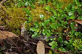 Rubus gunnianus is found in mountainous areas such as alpine moorlands, and subalpine woodlands across Tasmania, including areas such as the Central Coast, Derwent Valley, Hobart, Huon Valley and the West Coast.[7] It is frost hardy, which is essential to alpine environments, due to the harsh weather and exposed conditions at high altitude. It prefers moist, sheltered areas among mosses and leaf litter, where it can survive the harsh conditions of alpine areas, but it can also survive in semi-exposed areas.