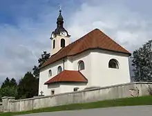 The parish church in Rudnik is dedicated to Saints Simon and Jude. The church was originally built in the Gothic style and was first mentioned in written sources in 1462. It was remodeled in the Baroque style in 1753. A wall fresco of Saint Christopher from 1500 has been moved into the belfry. The church's main altar is late Baroque, from the second half of the 18th century. It features statues of Saints Simon and Jude, and the Virgin and Child.[6] The church was originally part of the proto-parish of Saint Peter in Ljubljana. It was elevated to a vicariate in 1787, and it became a parish in its own right in 1875.[1]