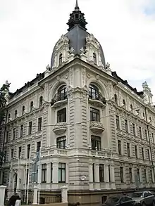 Rudolf Heinrich Zirkwitz studied at the Riga Polytechnic Institute (today Riga Technical University) and graduated in 1882. Apart from his work as an architect, he was also an assessor in a number of insurance companies and worked as a building inspector at the Riga City Construction Board and taught drawing at the City Gymnasium. As an architect, he designed around 25 multi-storey apartment buildings in Riga and also supplied the plans for Igate Manor and plans for the rebuilding of Bīriņi Palace. The buildings he designed were Eclectic, with occasional influences from Art Nouveau. Many of the buildings designed by Zirkwitz in Riga were built during the heyday of Art Nouveau architecture in the city.[1]