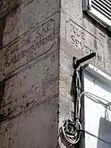 - 4 - Engraving of streetname on building corner. "St" scratched away.