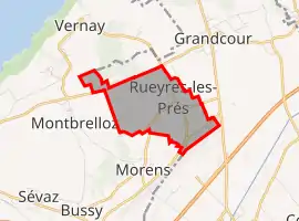 listen)) is a former municipality in the district of Broye in the canton of Fribourg in Switzerland. On 1 January 2017 the former municipalities of Rueyres-les-Prés, Bussy, Estavayer-le-Lac, Morens, Murist, Vernay and Vuissens merged into the new municipality of Estavayer.